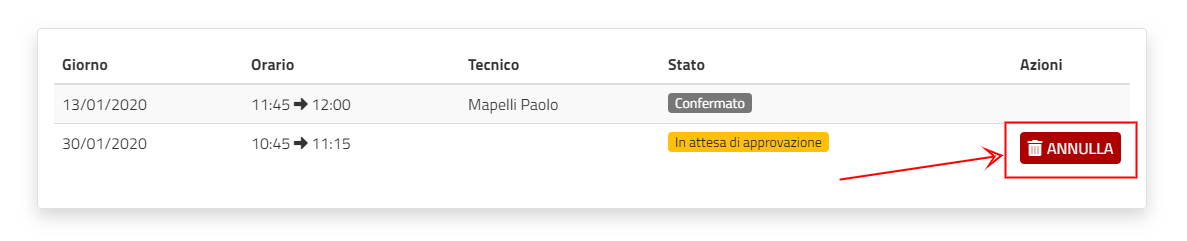 Tramite CPortal360 è possibile annullare solamente gli appuntamenti in attesa di approvazione.